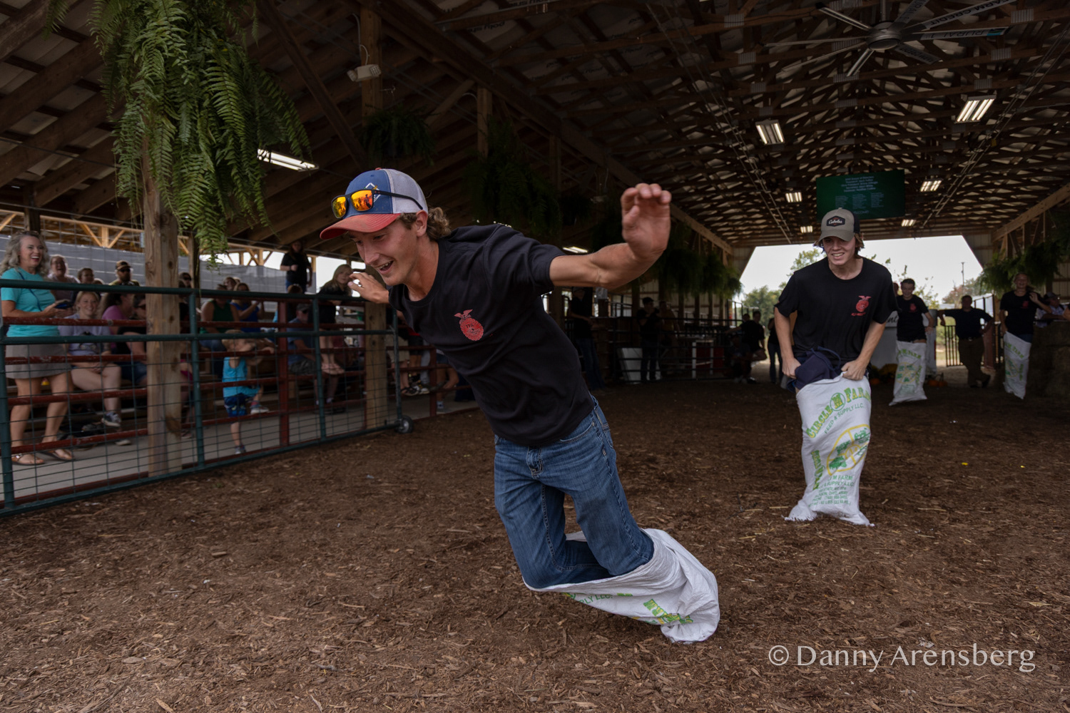 A kid uses a drill on KC Burdette's vehicle during the 40th Annual Harvest 50 race at Skyline Speedway, Saturday, Sept. 27, 2025, in Guysville, Ohio.